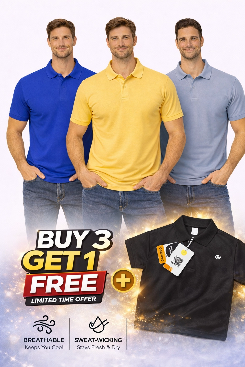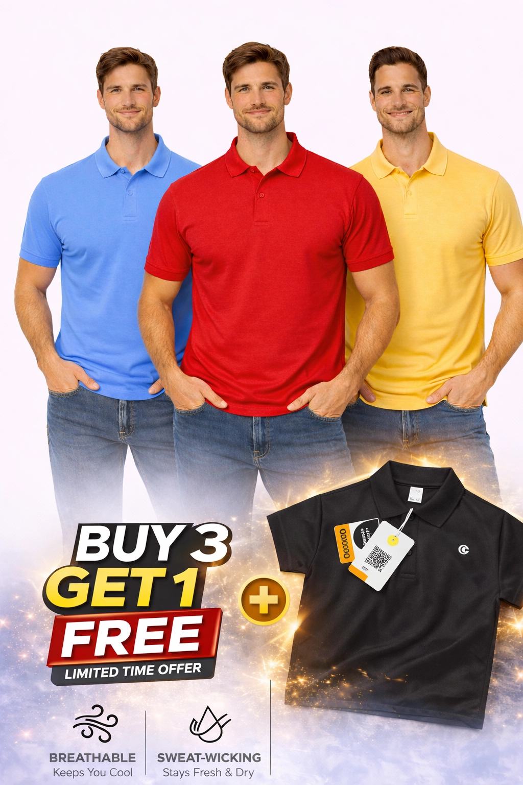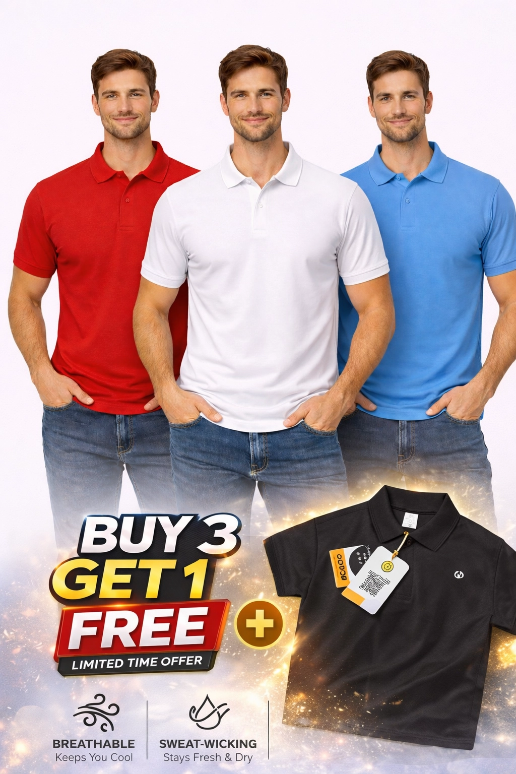 - Iconic Polo Neck Fit for Sporty Men’s T-Shirt brings style with performance-driven comfort. Featuring a classic Polo neck design, this sports tee offers a sleek and athletic look, perfect for training, running, gym sessions, or casual outings.