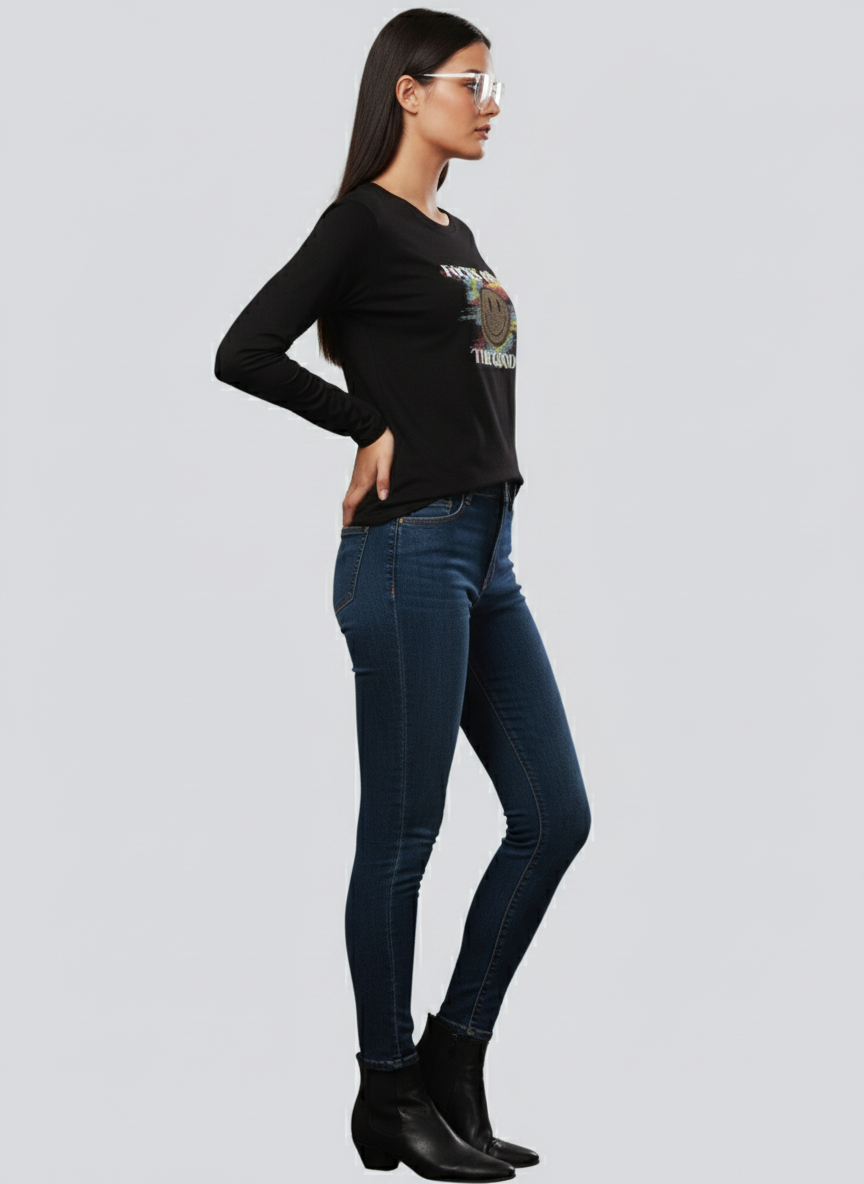 Graphicoart Design Women’s Full Sleeve – Cotton Printed T Shirt (M-L)