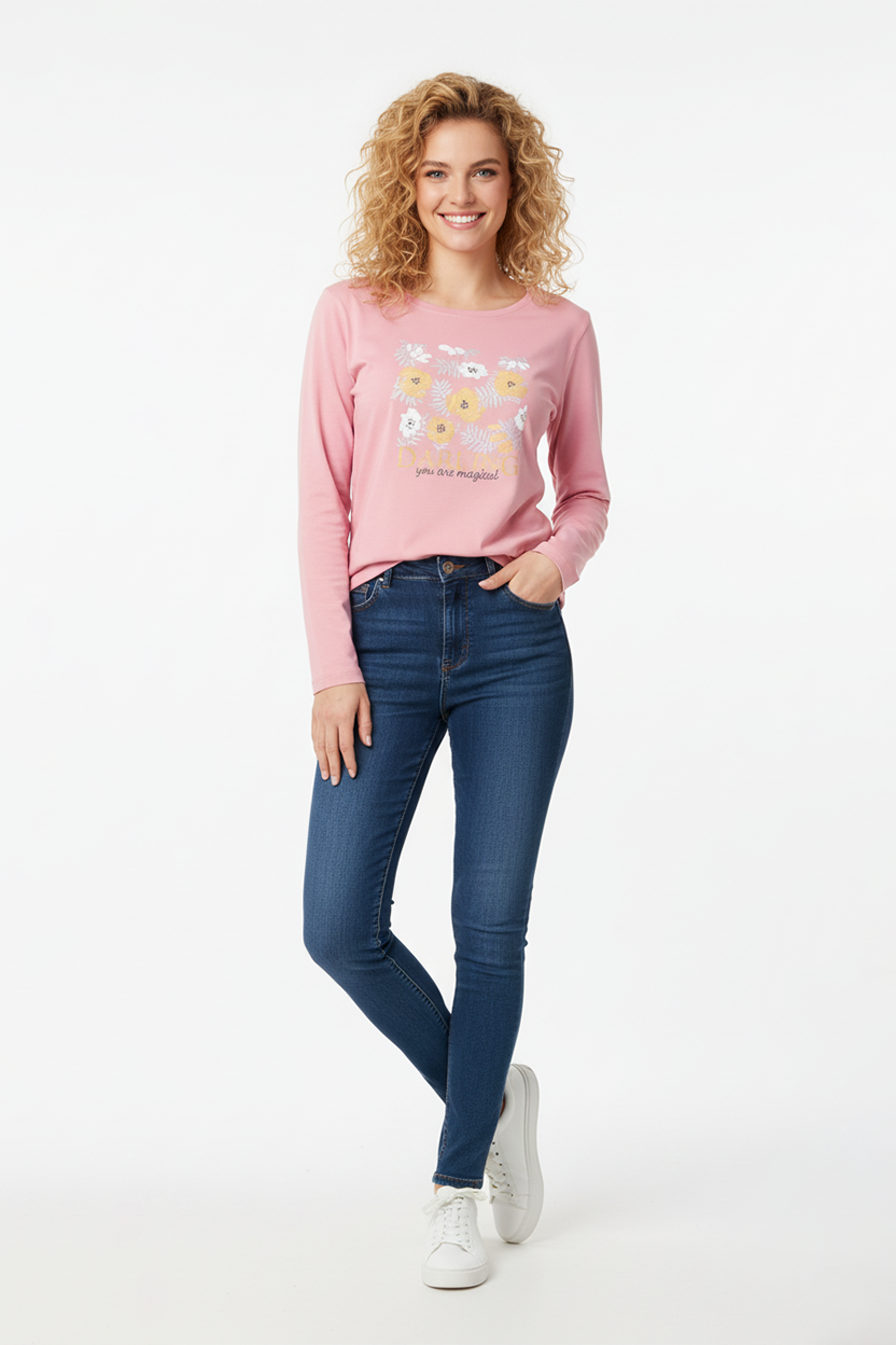 Graphicoart Design Women’s Full Sleeve – Cotton Printed T Shirt (M-L)