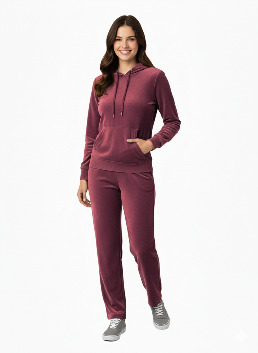- Graphicoart Design Women’s Velvet Super Soft Solid Night Suits/Tracksuit with Hood for Winter