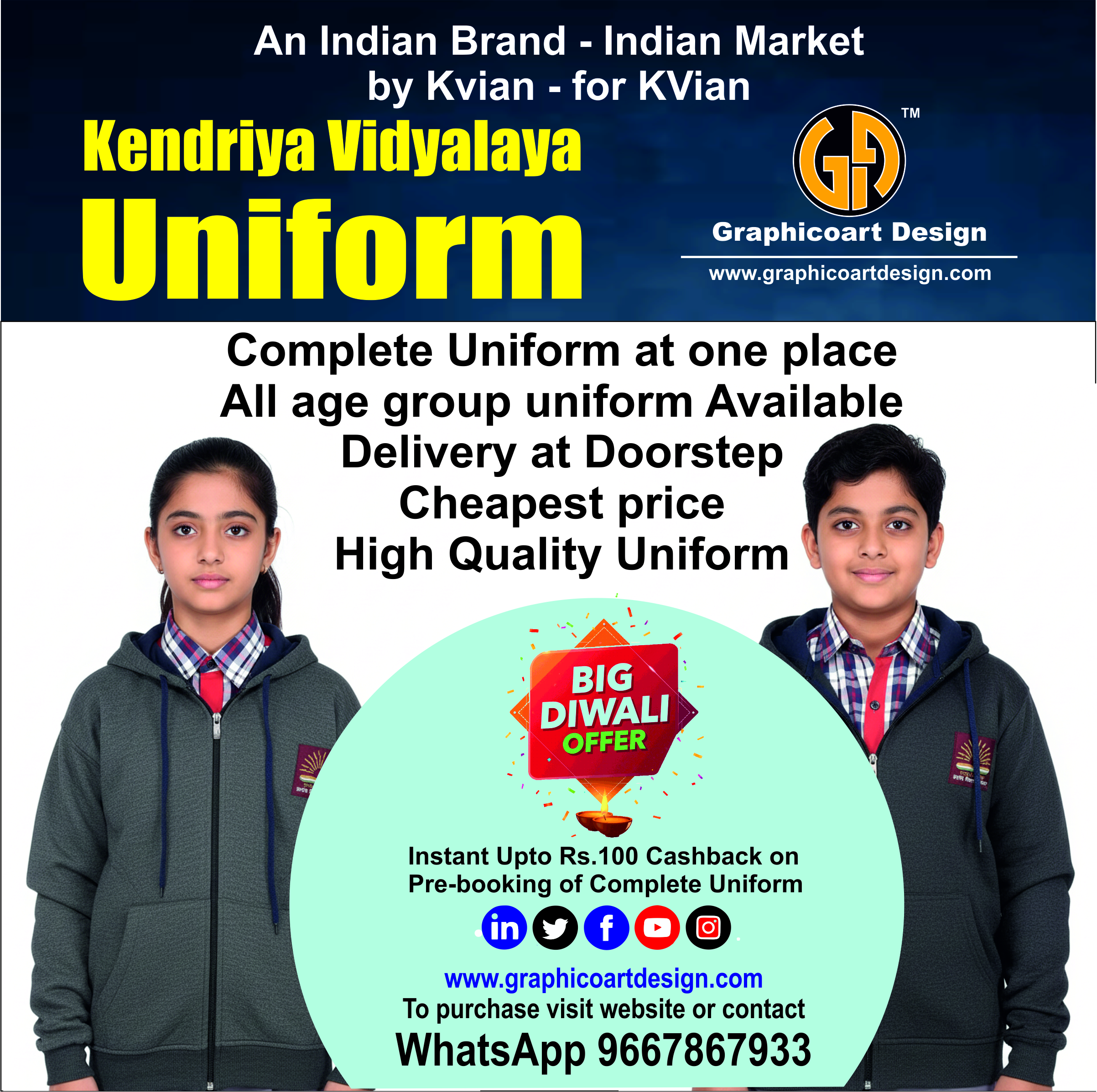 WhatsApp 9667867933 for confirm the details of uniform requirement according to age, height and waist size.