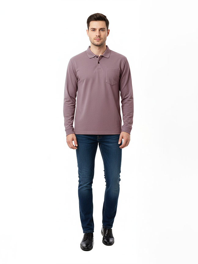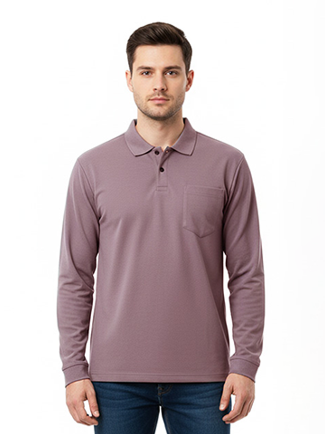 Graphicoart Design Men’s Full Sleeve Polo Collar T Shirt with Pocket – Mauve colour – (M-2XL)
