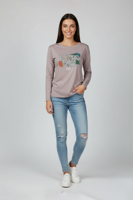 Graphicoart Design Women’s Full Sleeve – Cotton Printed T Shirt (M-L)