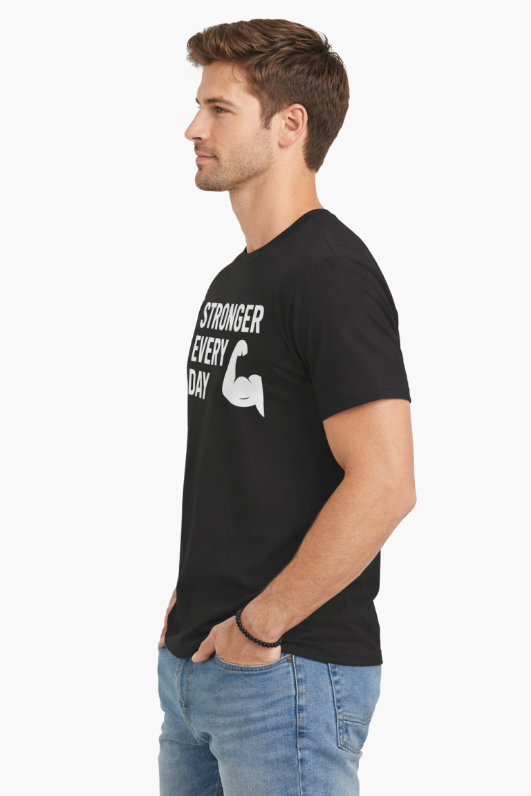 Graphicoart Design Men’s White Cotton Printed T-Shirt |“Stronger Everyday” | Sports Gym Wear & Workout Tee | Casual Round Neck Half Sleeve | Soft Comfortable Fabric | Regular Fit | Size M-2XL